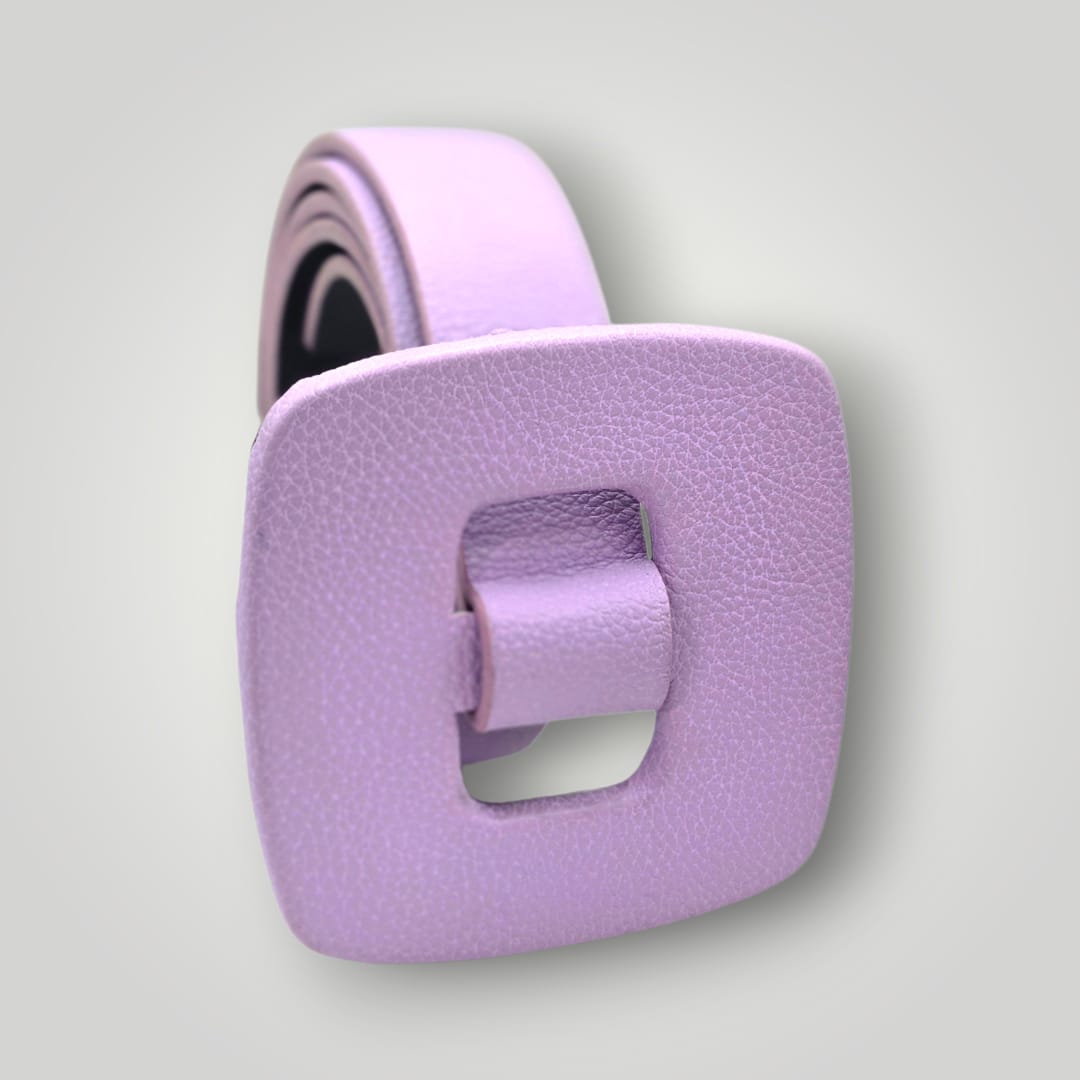 Hermosos cinturones en hebilla cuadrada de cuero sintético metalizado. Perfectos para cualquier ocasión.
