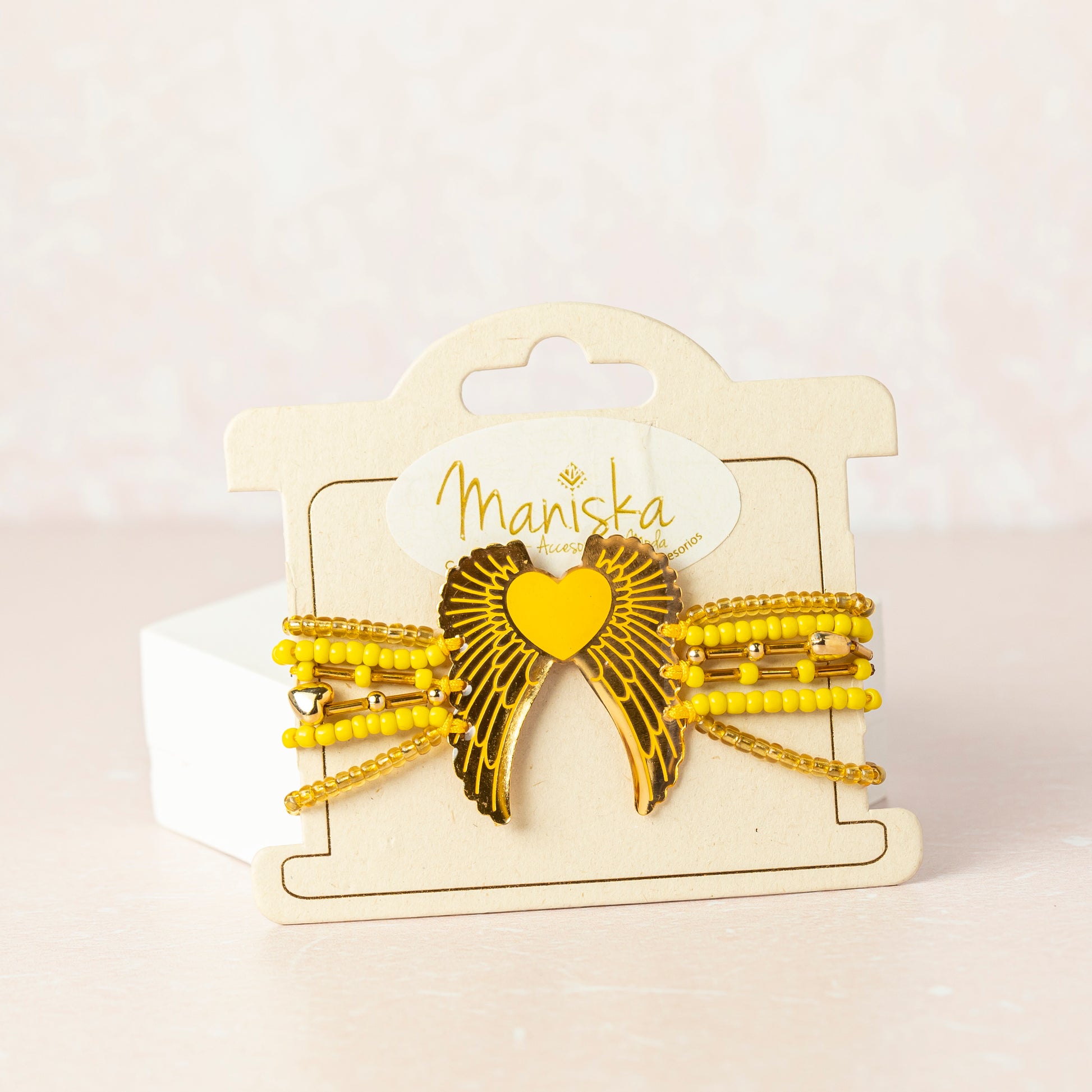 Hermosa pulsera en hilo tejida a mano con hermoso detalle de alas en su centro