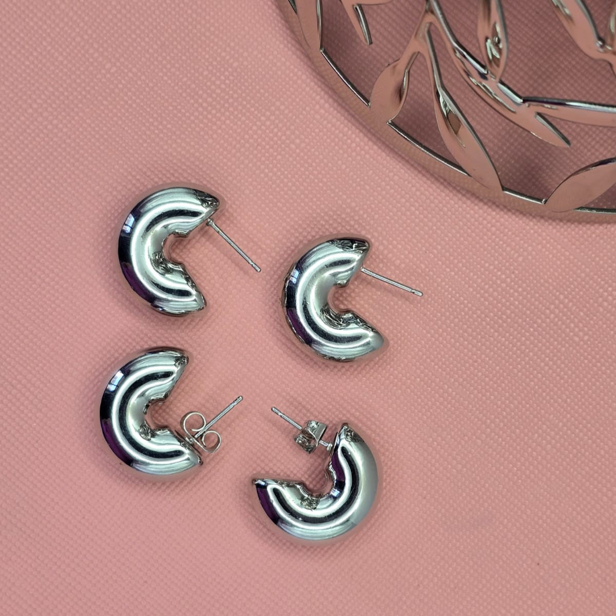 Hermosos topos plateados, un arete cómodo y elegante para complementar tu outfit. Además de su comodidad al ser muy livianas.